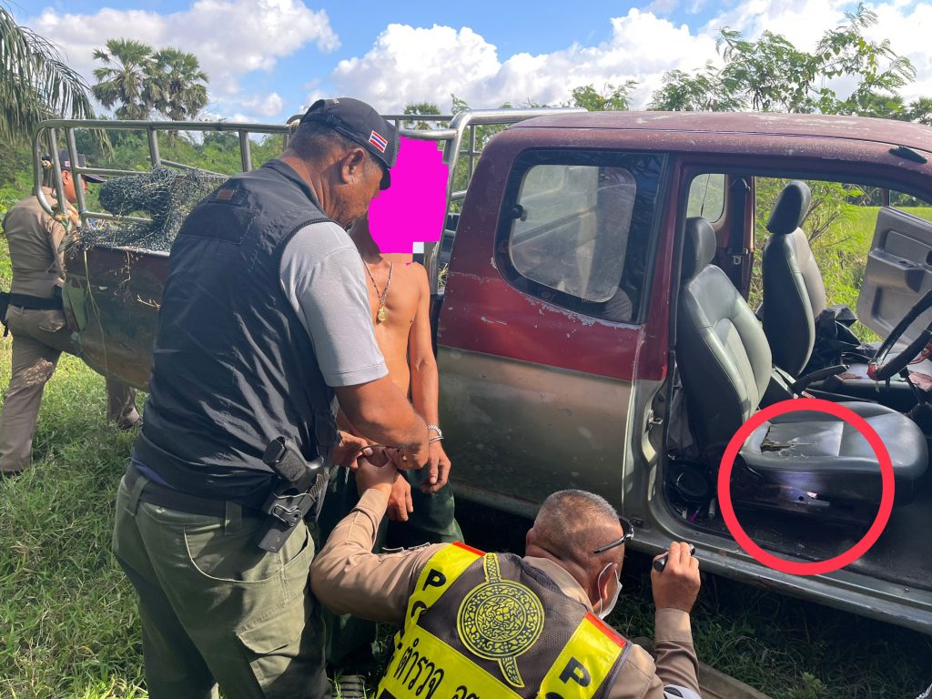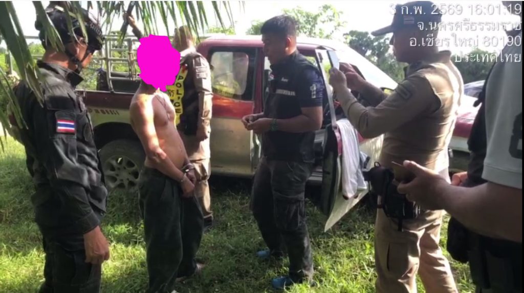 สถานที่เหตุ/จับกุม ถนนสายบ้านนา ม.9 ตำบลเขาพระบาท อำเภอเชียรใหญ่ จังหวัดนครศรีธรรมราช