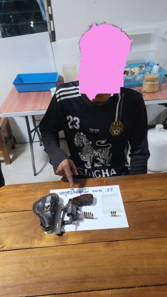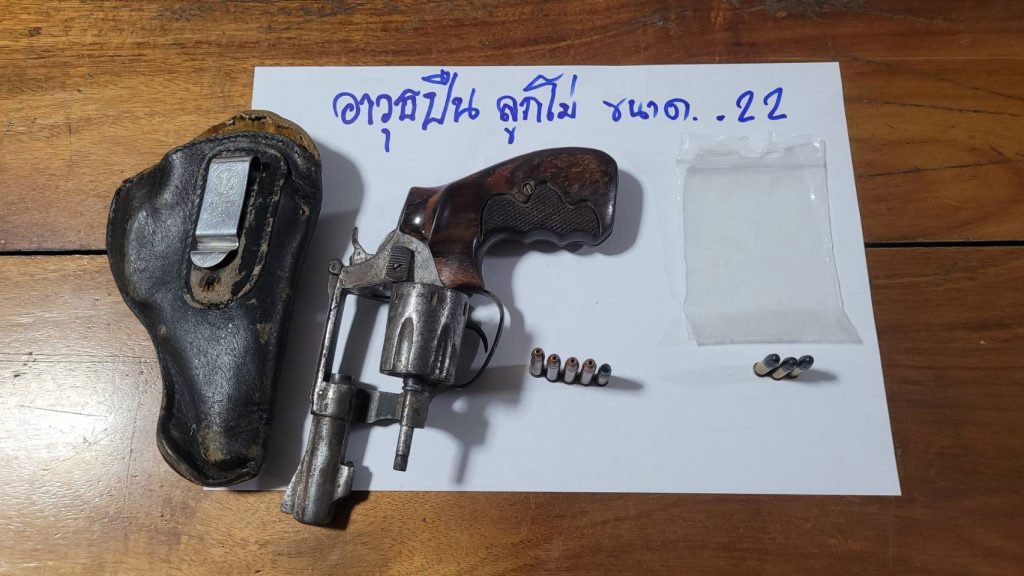 1. อาวุธปืนพกสั้นลูกโม่ (หมายเลขตัวปืน 93926123) ไม่ทราบหมายเลขทะเบียน ขนาด .22 มม.