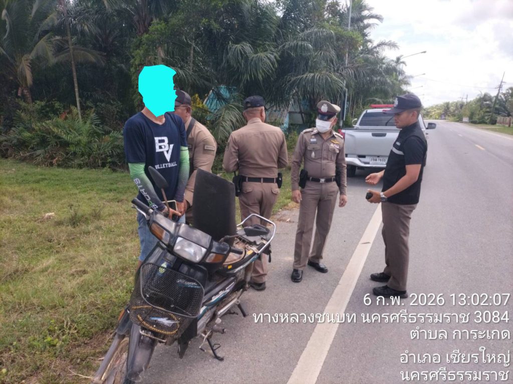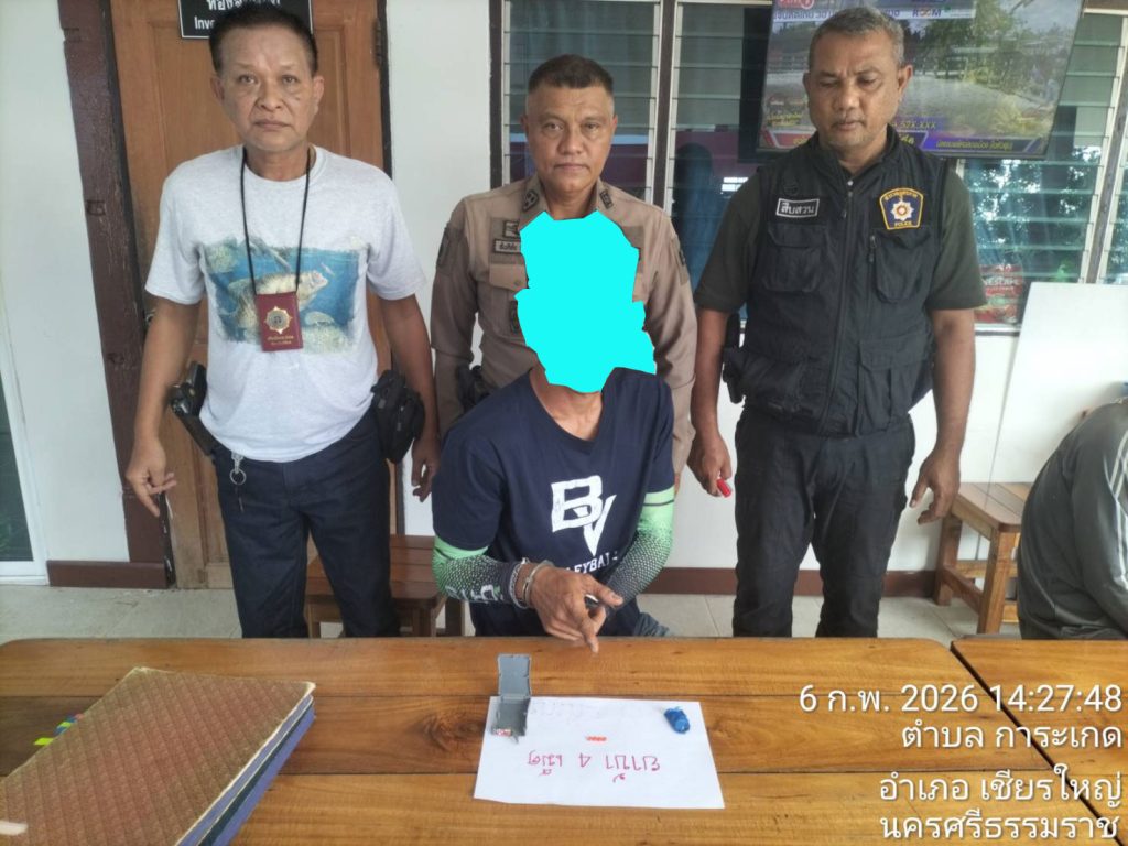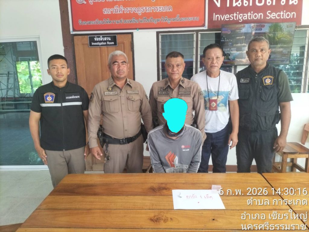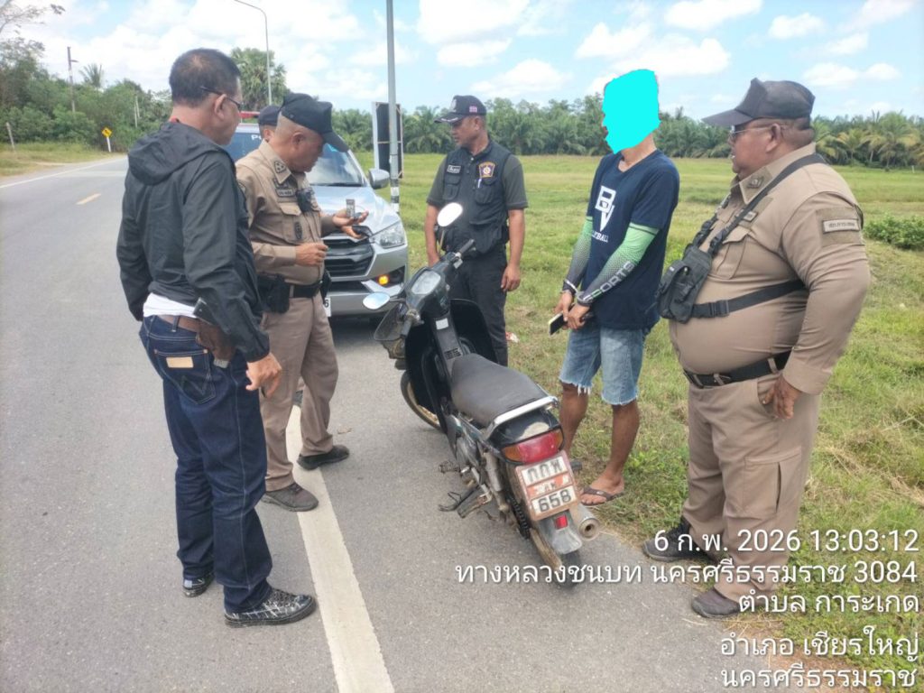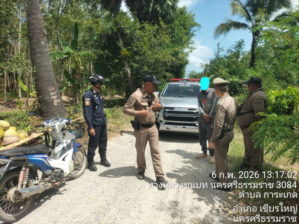 สถานที่เหตุ/จับกุม บนถนนสายการะเกด – บ้านท้ายทะเล ม.7 ตำบลการะเกด อำเภอเชียรใหญ่ จังหวัดนครศรีธรรมราช