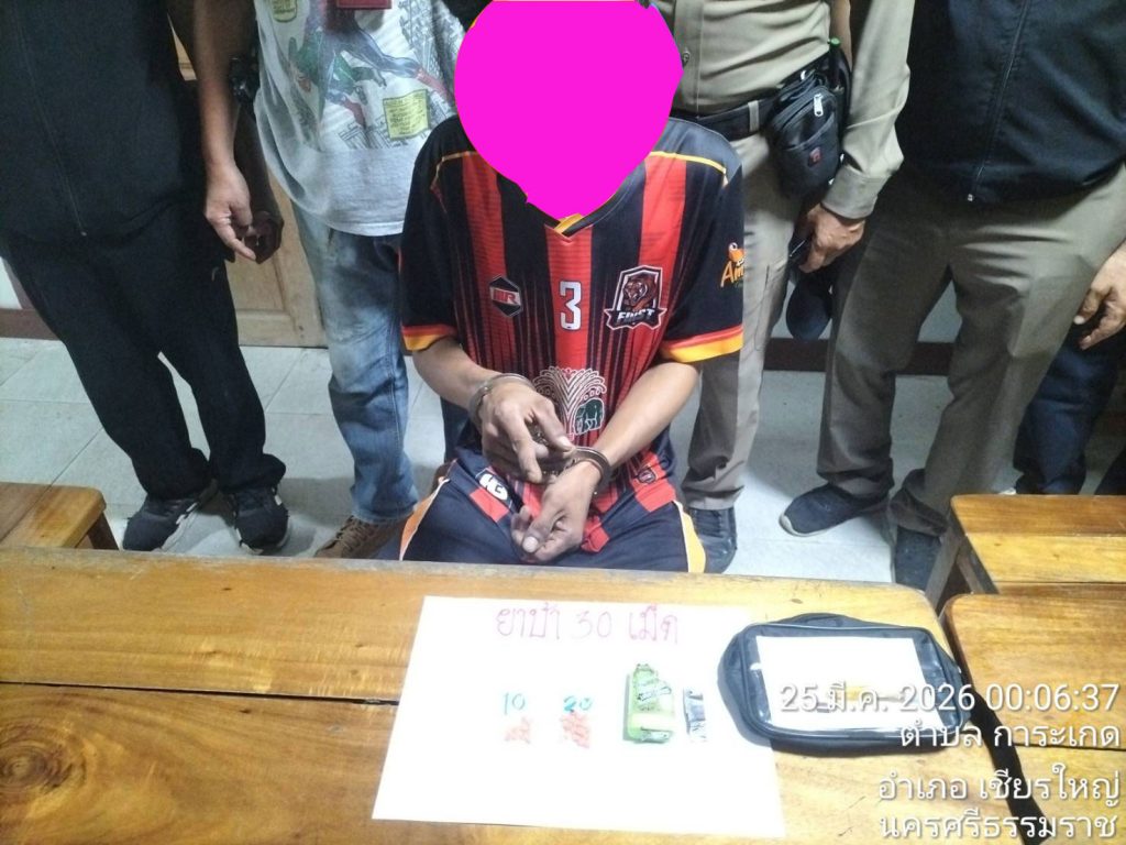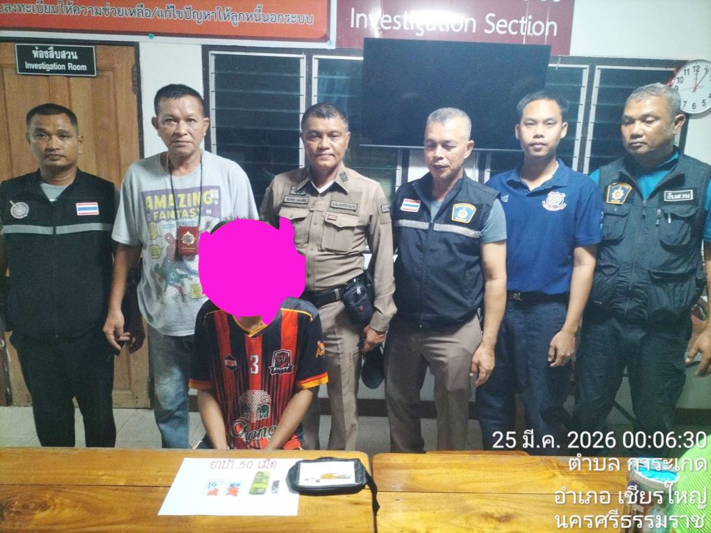 🗺️สถานที่เหตุ/จับกุม จับกุม ถนนสายวัดพระพุทธบาท ม.4 ตำบลเขาพระบาท อำเภอเชียรใหญ่ จังหวัดนครศรีธรรมราช
