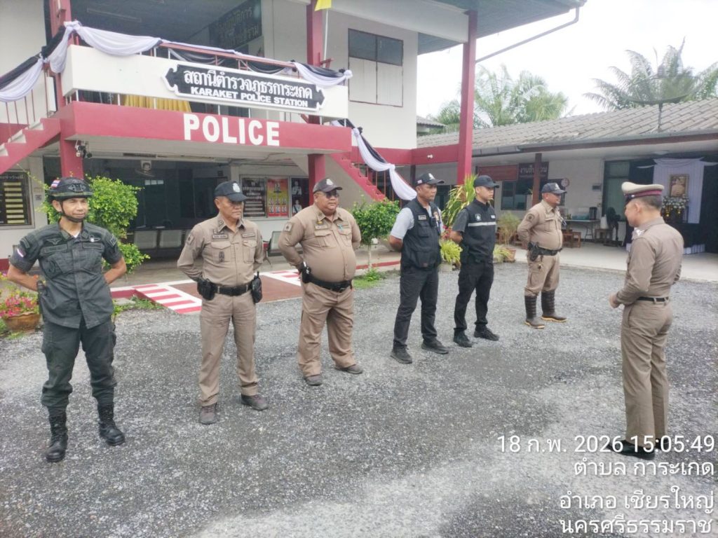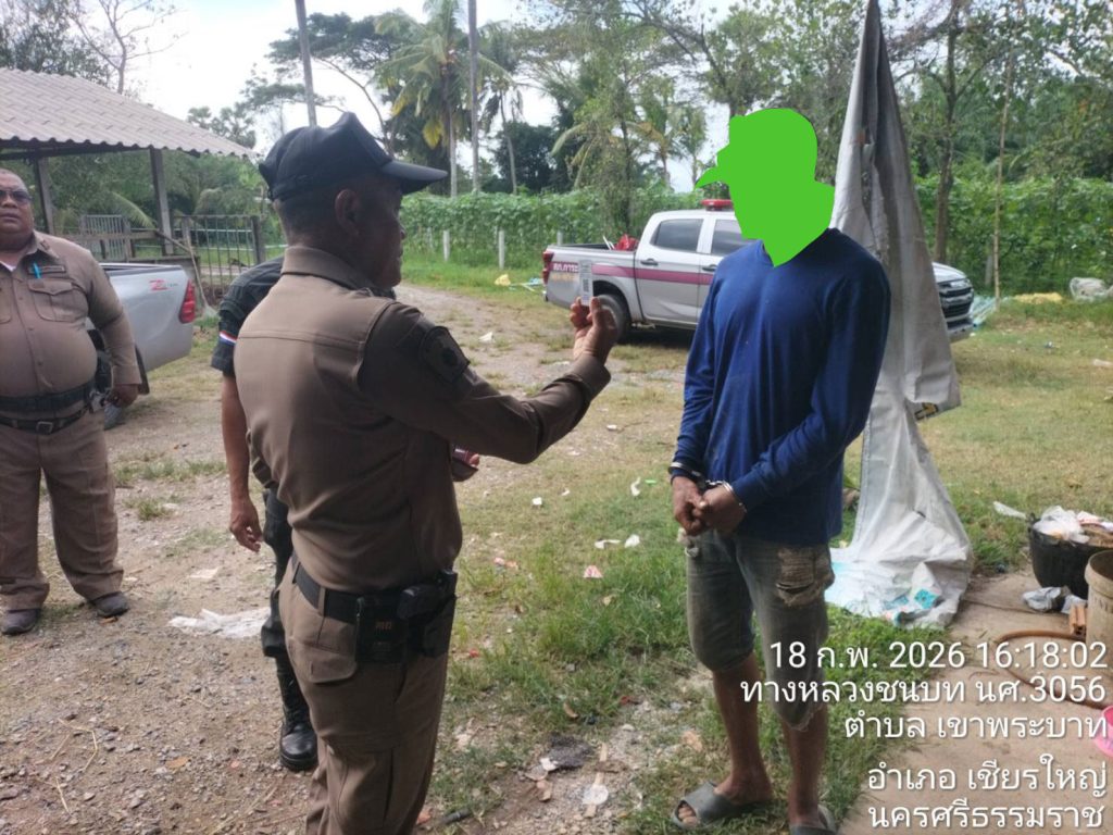 จับกุม ผู้ต้องหา 1 ราย 1 คน 19 กุมภาพันธ์ 2569 โดย admin_karaket / ข่าวประชาสัมพันธ์,ข่าวกิจกรรม,ข่าวประชาสัมพันธ์,ข่าวประชาสัมพันธ์,ข่าวฝากประชาสัมพันธ์ 18 กุมภาพันธ์ 2569 เวลา 16.30 น.ภายใต้การอำนวยการของ พล.ต.ต.พรชัย ขจรกลิ่น รอง ผบช.ภ.8 รรท.ผบก.ภ.จว.นครศรีธรรมราช พ.ต.ท.วรรณชัย คงศาลา สวญ.สภ.การะเกดชุดจับกุมนำโดย พ.ต.ท.สายันต์ ชูกร สวป.สภ.การะเกด/เจ้าพนักงาน ป.ป.ส. เลขประจำตัว 6606620 ว่าที่ พ.ต.ต.ปริญญา แก้วยอด สว.สส.สภ.การะเกด พร้อม ร.ต.อ.สันติชัย ทองเกียว , ร.ต.อ.ศักดิพล สกุณา , ร.ต.ต.ธีรวุฒิ ปล้องเกิด , ร.ต.ต.พล ปานซ้าย ด.ต.ประพันธ์ คชฤทธิ์ , ส.ต.ต.เทพดนัย ผิวนิ่มนวลจับกุม ผู้ต้องหา 1 ราย 1 คนพร้อมด้วยของกลาง(1)ยาเสพติดให้โทษ ประเภทที่ 1 ( ยาบ้า ) จำนวน 9 เม็ดข้อกล่าวหา(1)มียาเสพติดให้โทษประเภท1(ยาบ้า)ไว้ในครอบครองโดยผิดกฎหมาย(2)เสพยาเสพติดให้โทษประเภท1(เมทแอมเฟตามีน)โดยผิดกฎหมายสถานที่เหตุ/จับกุม จับกุม ถนนสายรอง บ้านตรุด – บ้านหนองสีขวัญ ม.1 ตำบลเขาพระบาท อำเภอเชียรใหญ่ จังหวัดนครศรีธรรมราช จำนวนคนดู: 4