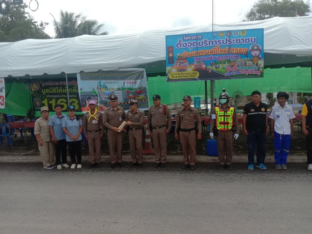 ตรวจเยี่ยมจุดตรวจ-จุดบริการประชาชน 30 ธันวาคม 2566 โดย admin_karaket / ข่าวภารกิจผู้บังคับบัญชา,ข่าวภารกิจผู้บังคับบัญชา,อบรมปล่อยแถว 30 ธ.ค. เวลา 12.20 น. พ.ต.อ.สุทัศน์ สงสยม รองผู้บังคับการตำรวจภูธรจังหวัดนครศรีธรรมราช ตรวจเยี่ยมจุดตรวจ-จุดบริการประชาชน หน้า รพ.สต.การะเกด พ.ต.ท.วรรณชัย คงศาลา สวญ.สภ.การะเกด พร้อม ข้าราชการตำรวจ สภ.การะเกด ผู้ใหญ่บ้าน ผู้ช่วยผู้ใหญ่บ้าน จนท.รพ.สต. จนท.ฝ่ายปกครอง อสม. อพปร. ให้การต้อนรับ กำชับให้อำนวยความสะดวกด้านการจราจรให้แก่ประชาชนในการเดินทาง ตลอดจนบังคับใช้กฏหมาย 10 ข้อหาหลัก เพื่อลดอุบัติเหตุการทางถนน ช่วงเทศกาลปีใหม่ พ. ศ. 2567 จำนวนคนดู: 4