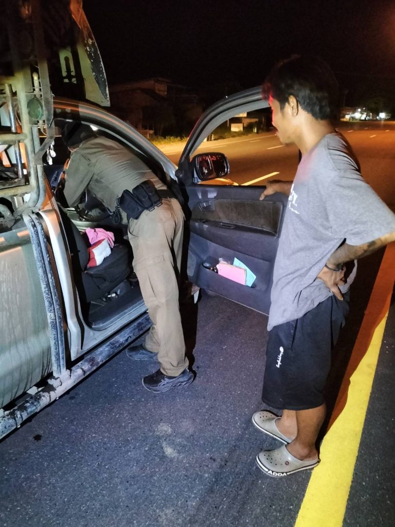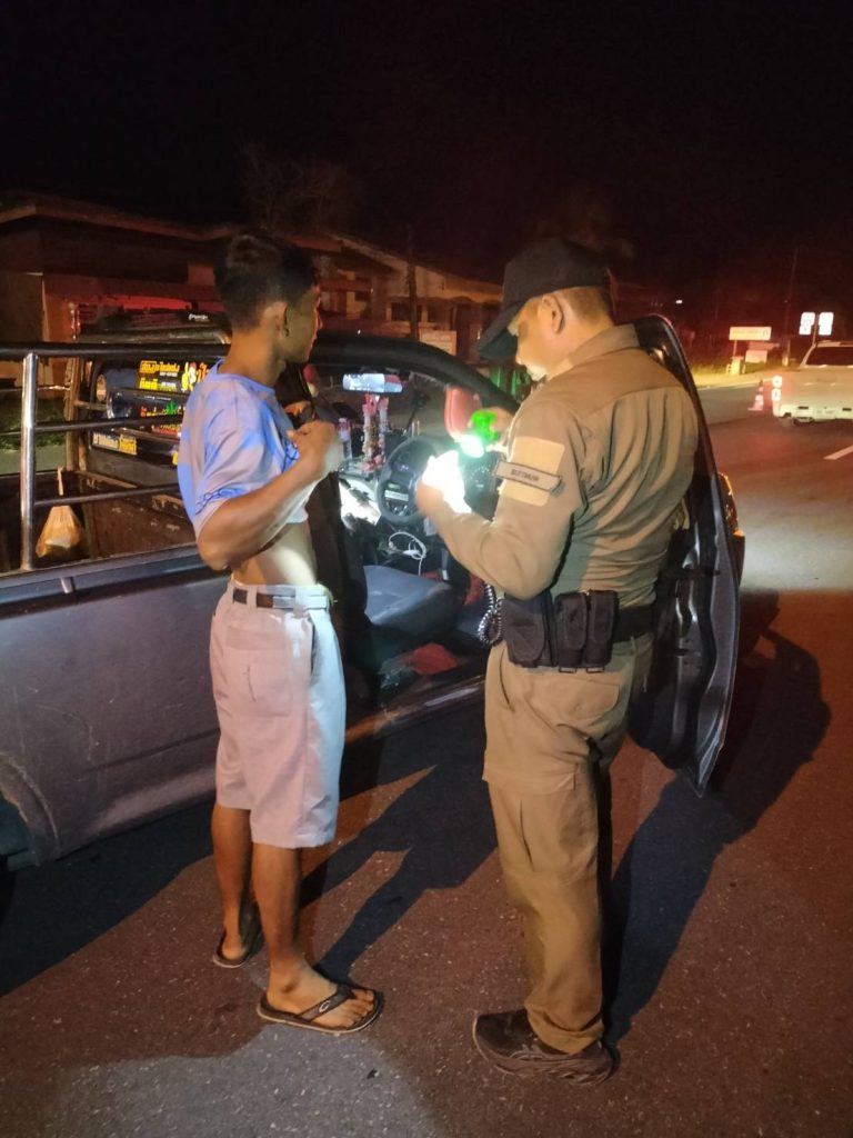 ตั้งจุดตรวจสัมพันธ์หน้า สภ.การะเกด 8 กันยายน 2567 โดย admin_karaket / ข่าวประชาสัมพันธ์,ข่าวกิจกรรม,ข่าวประชาสัมพันธ์,ข่าวประชาสัมพันธ์,ข่าวฝากประชาสัมพันธ์ 8 กันยายน 2567 เวลา 20.15 น. พ.ต.ท.สายันต์ ชูกร สวป.สภ.การะเกด พร้อม จนท.สายตรวจรถยนต์, ชุดเคลื่อนที่เร็ว ,จราจร, สืบสวน, เขาพระบาท ตั้งจุดตรวจสัมพันธ์หน้า สภ.การะเกด บนถนนสาย ๔๐๘ หมู่ ๖ ต.การะเกด อ.เชียรใหญ่ กวดขันวินัยจราจร ๑๐ ข้อหาหลัก เพื่อลดอุบัติเหตบนท้องถนน มาตรการกวดขันการแข่งรถในทาง มาตรการป้องกันปราบปรามอาชญากรรมและยาเสพติด ผลการปฏิบัติ จับกุม ครอบครองยาเสพติด(ยาบ้า) จำนวน 24 เม็ด 1 ราย 1 คน จำนวนคนดู: 2