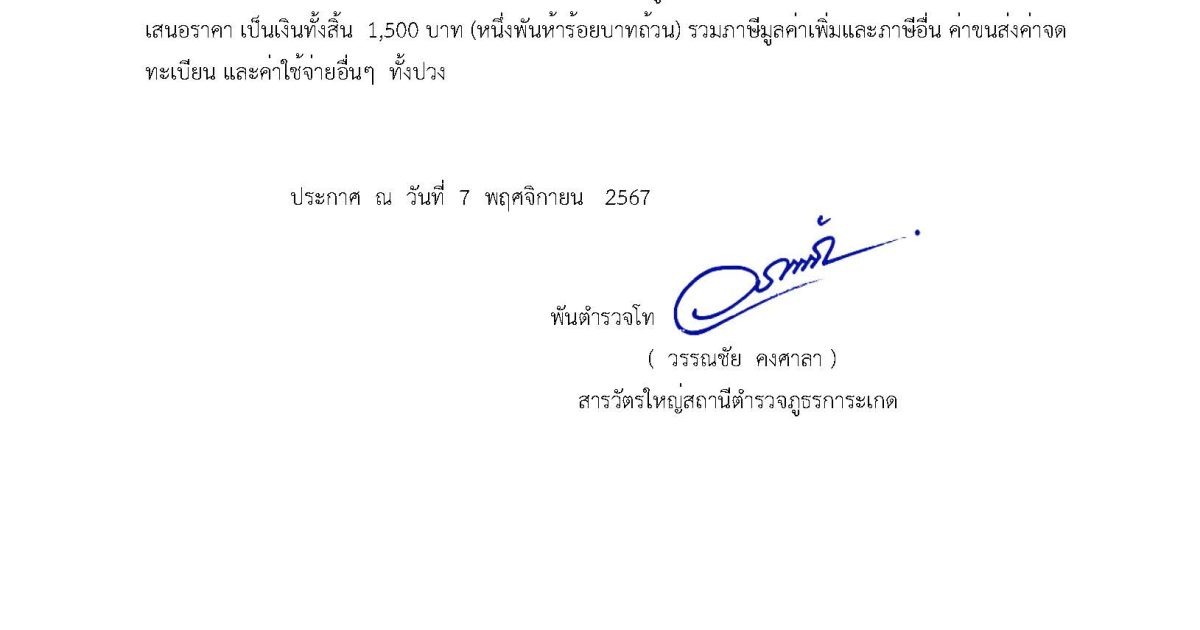 ประกาศผู้ชนะการเสนอราคา จัดซื้อวัสดุน้ำมันเชื้อเพลิง งบ ชมส. โดยวิธีเฉพาะเจาะจง