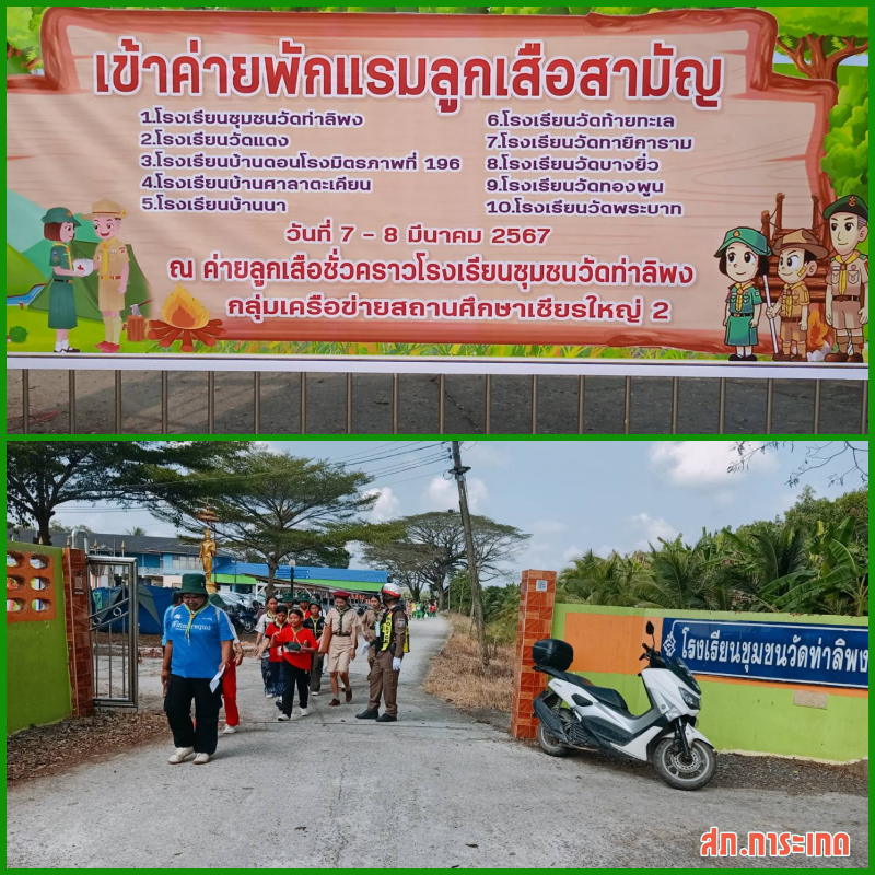 7 มีนาคม 2567 08.30 น. – 23.59 น. ภายใต้อำนวยการของ พ.ต.ท.วรรณชัย คงศาลา สวญ.สภ.การะเกด มอบหมายให้  พ.ต.ท.สายันต์  ชูกร สวป.สภ.การะเกด สั่งการให้ ร้อยเวร 20  ชุดสายตรวจรถยนต์ ชุดเคลื่อนที่เร็ว และสายตรวจจราจร อำนวยความสะดวกด้านการจราจรและรักษาความปลอดภัย ให้แก่ลูกเสือ-เนตรนารี เข้าค่ายพักแรม ของโรงเรียนชุมชนวัดท่าลิพง เหตุการณ์ปกติ