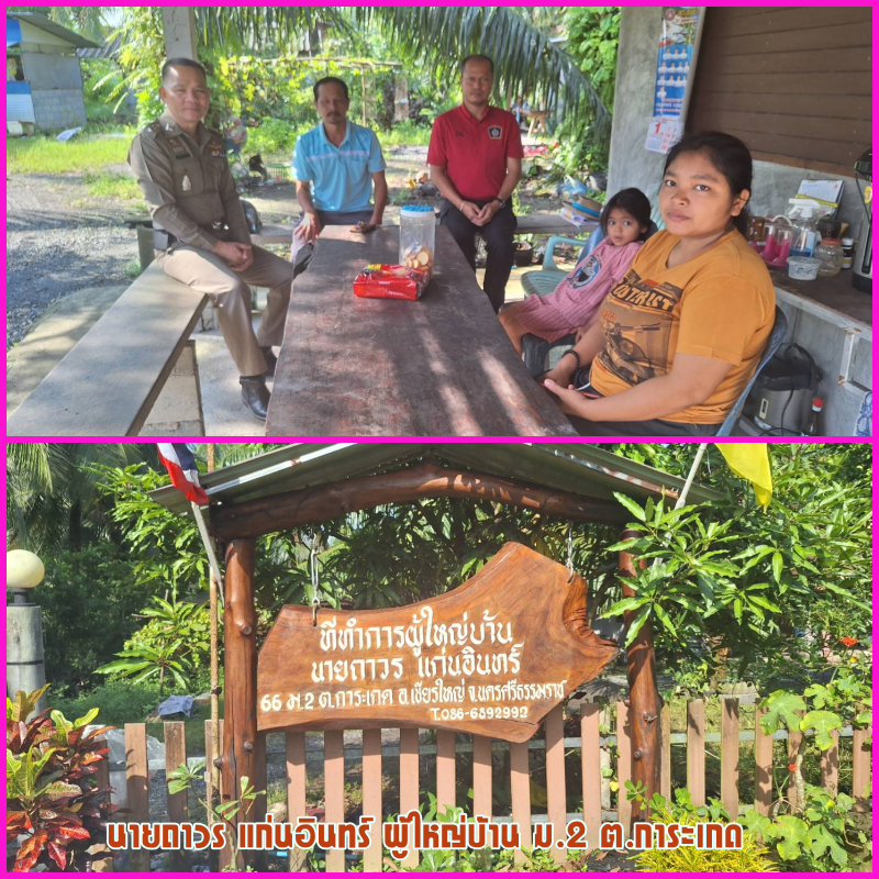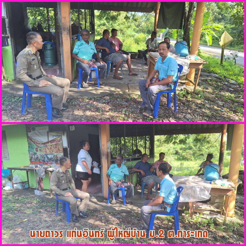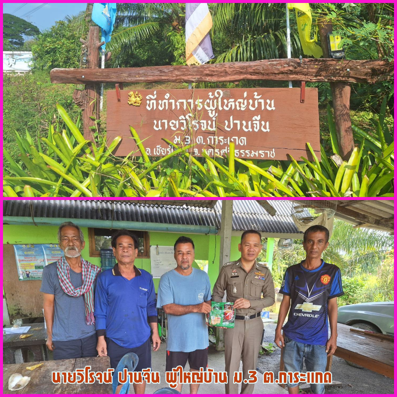 เยี่ยมเยียนผู้นำหมู่บ้านและราษฎร 16 มกราคม 2567 โดย admin_karaket / ข่าวภารกิจผู้บังคับบัญชา,ข่าวภารกิจผู้บังคับบัญชา,อบรมปล่อยแถว 16 มกราคม 2567 เวลา 09.39 น. พ.ต.ท.วรรณชัย คงศาลา สวญ.สภ.การะเกด ได้เยี่ยมเยียนผู้นำหมู่บ้าน นายถาวร แก่นอินทร์ ผู้ใหญ่บ้านหมู่ที่ 2 ต.การะเกด อ.เชียรใหญ่ จ.นครศรีธรรมราช นายวิโรจน์ ปานจีน ผู้ใหญ่บ้าน หมู่ที่ 3 ต. อ.เชียรใหญ่ จ.นครศรีธรรมราช และ นายสันติชัย จินดาวัฒน์ ราษฎร ม.3 ต.การะเกด อ.เชียรใหญ่ จ.นครศรีธรรมราช สอบถามถึงปัญหาอาชญากรรม และ ปัญหายาเสพติด ในพื้นที่ จำนวนคนดู: 1