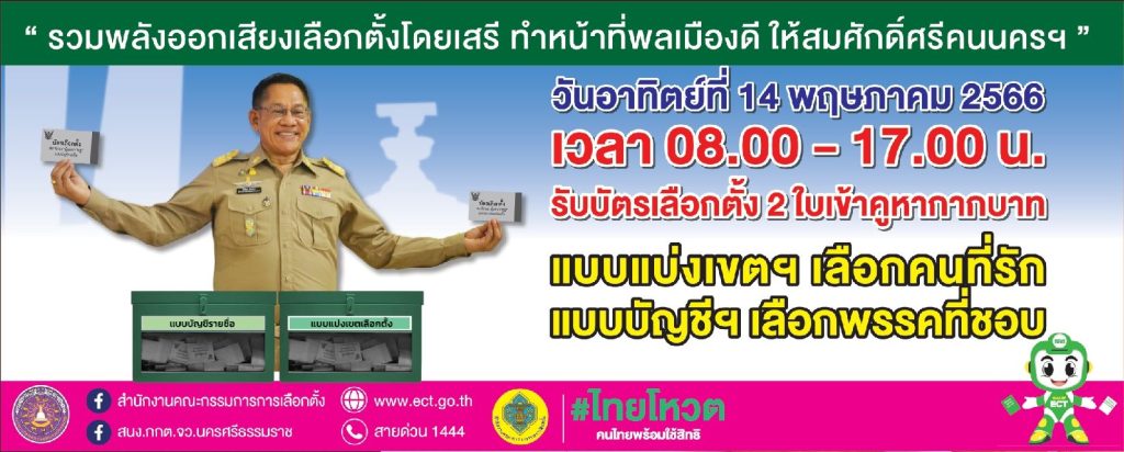 เลือกตั้งสมาชิกสภาผู้แทนราษฎร 20 เมษายน 2566 โดย admin_karaket / ข่าวประชาสัมพันธ์,ข่าวประชาสัมพันธ์,ข่าวฝากประชาสัมพันธ์ ประชาสัมพันธ์การเลือกตั้งสมาชิกสภาผู้แทนราษฎร เป็นการเลือกตั้งทั่วไป จำนวนคนดู: 1