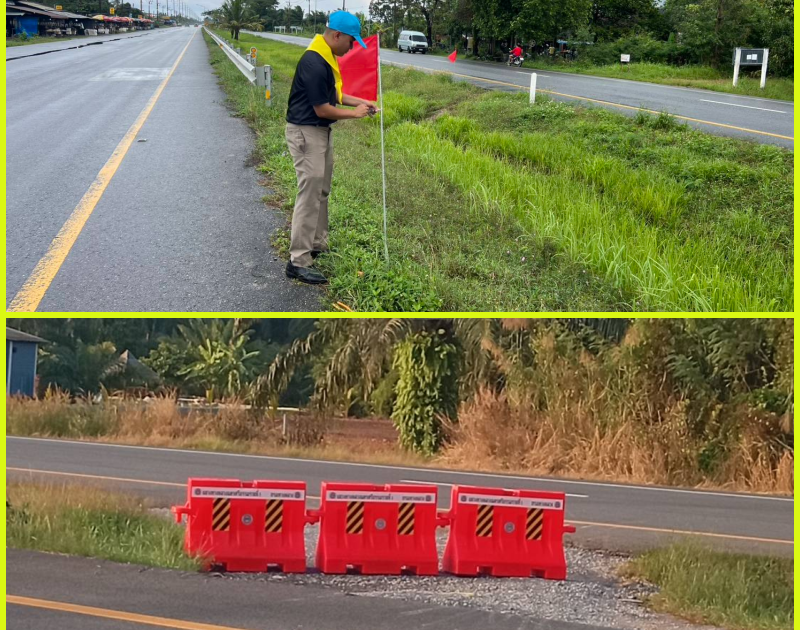 – ได้ติดตั้ง ธงแดง ติดตั้งริมถนน – ได้ติดตั้งแท่นแบริเออร์ ยูเทิร์นเถื่อน