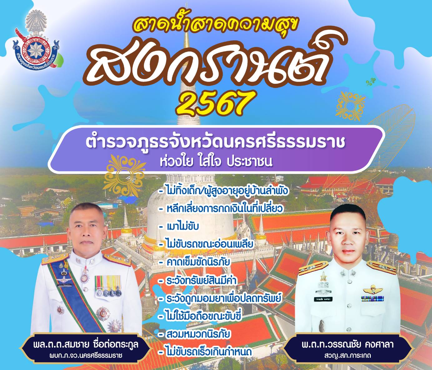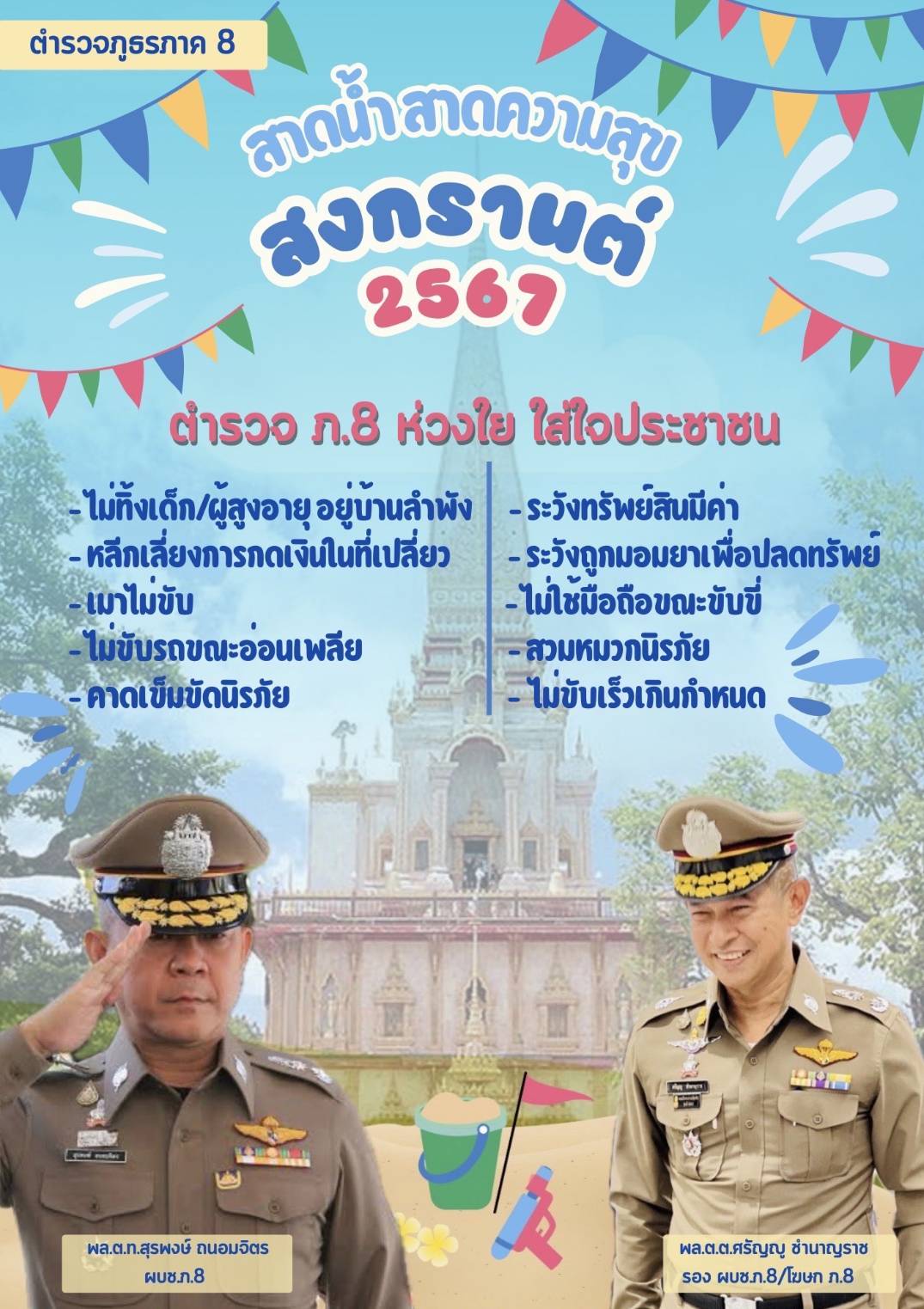สาดน้ำ สาดความสุข ช่วงเทศกาลสงกรานต์ 1-21 เม.ย. 2567 ตำรวจภูธรภาค 8 ห่วงใย ใส่ใจประชาชน 1.ไม่ทิ้งเด็