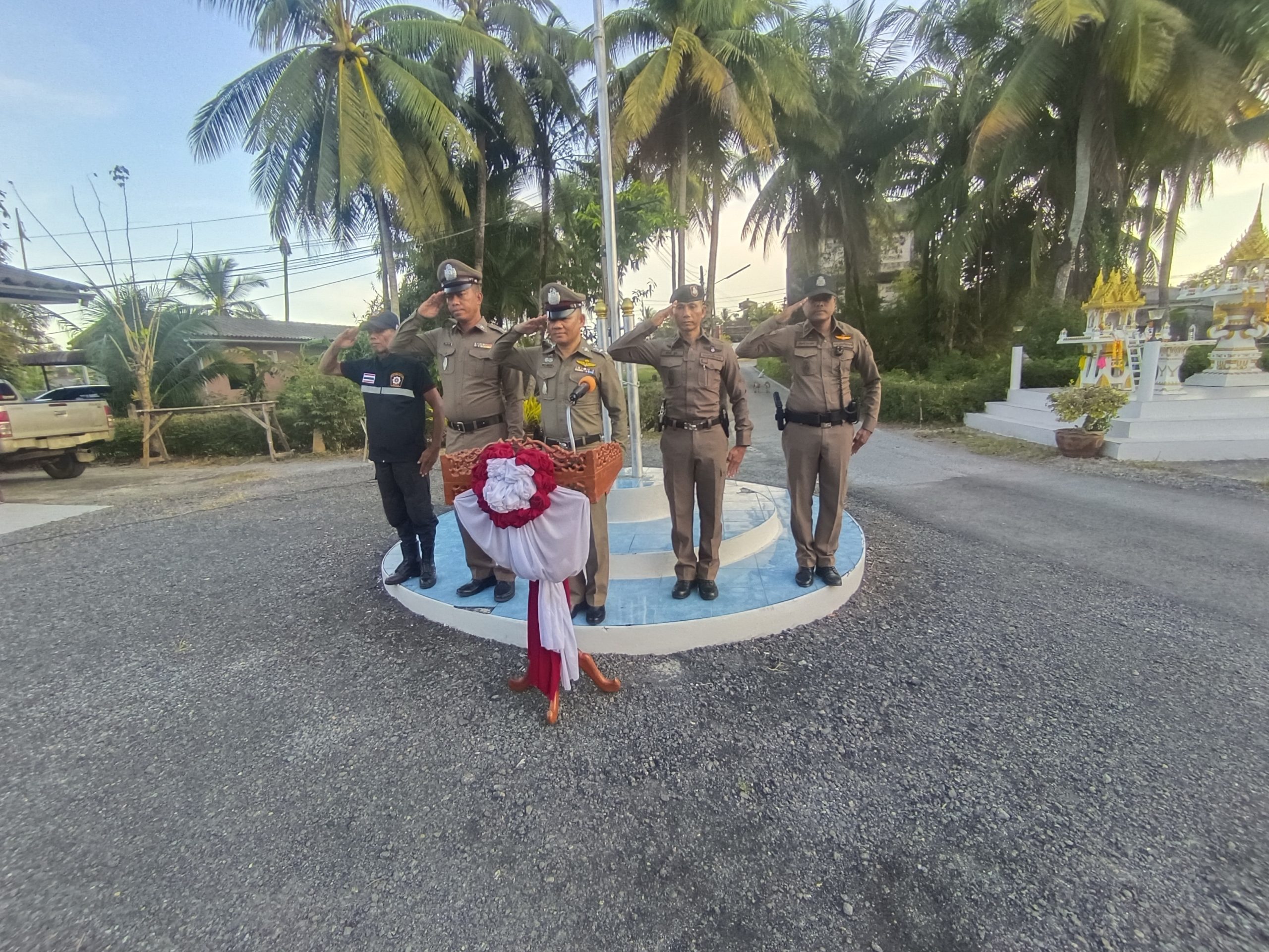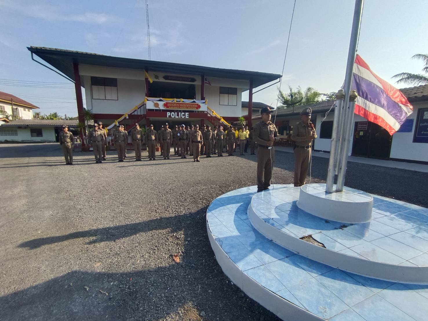 สภ.การะเกด พ.ต.ท.วรรณชัย คงศาลา สวญ.สภ.การะเกด พร้อม ข้าราชการตำรวจในปกครอง เข้าแถวเคารพธงชาติ ส