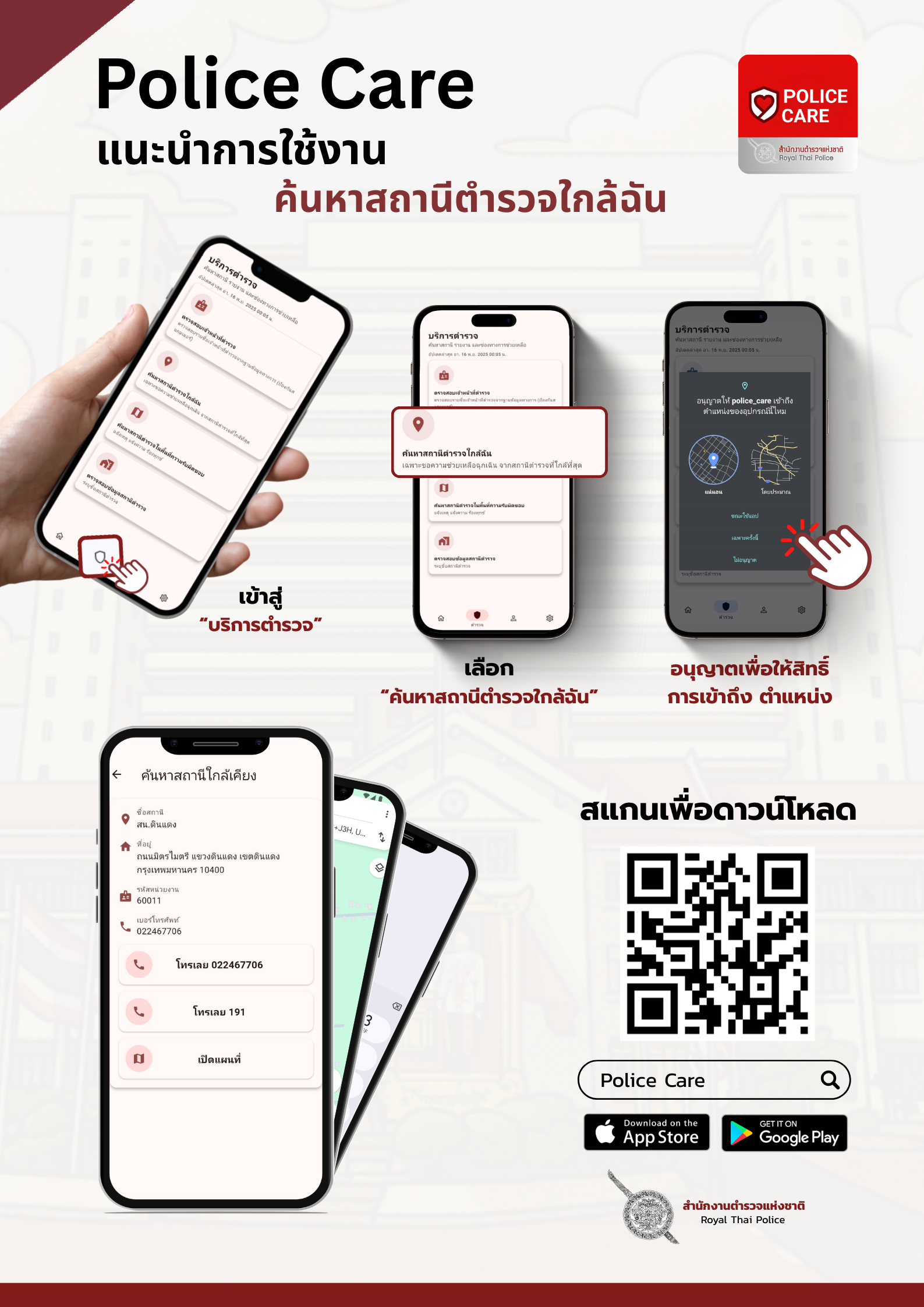 คลิปเปิดตัว Police Care Click here คลิปการใช้งาน Police Care Click here คู่มือการใช้งาน