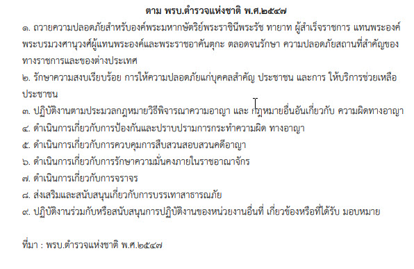 1.ข้อมูลเกี่ยวกับอำนาจหน้าที่หรือภารกิจของสถานีตำรวจ และบทบาทภารกิจความรับผิดชอบของแต่ละสายงานภายในสถานีตำรวจ