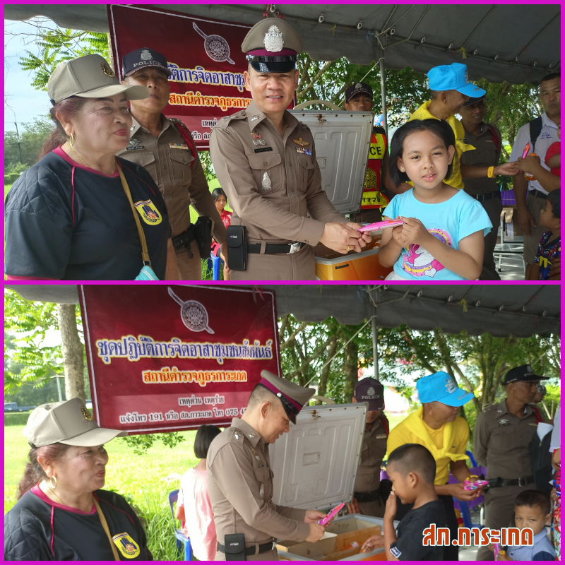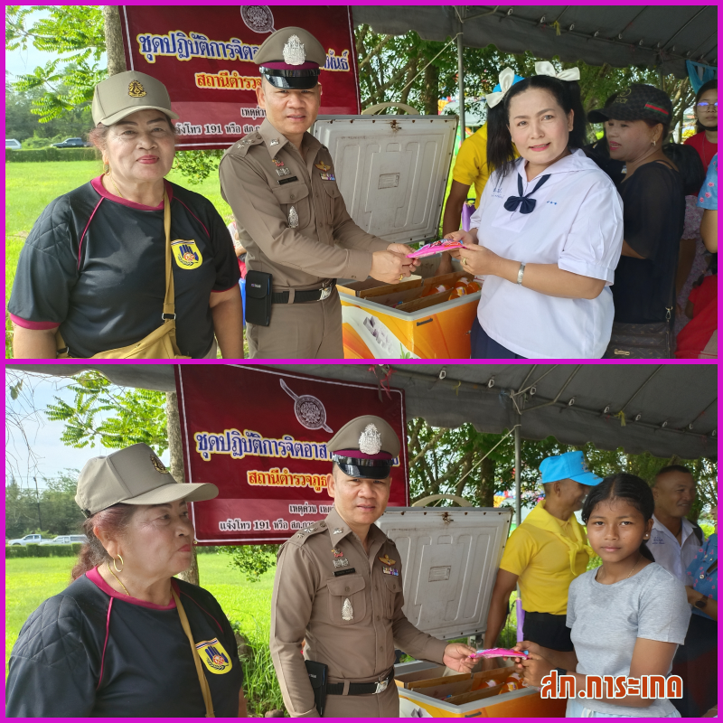 13 มกราคม  2567  เวลา 08.29 น.  พ.ต.ท.วรรณชัย  คงศาลา  สวญ.สภ.การะเกด พร้อมข้าราชการตำรวจ  ร่วมกับ กต.ตร.สภ.การะเกด จัดกิจกรรมงานวัดเด็กแห่งชาติ 2567  เพื่อส่งเสริมพัฒนาการของเด็กและเยาวชนทั้งทางร่างกายและจิตใจ สร้างความตระหนักในสิทธิ หน้าที่ ความรับผิดชอบและระเบียบวินัย ที่มีต่อตนเองและสังคม รวมทั้งยึดมั่นในสถาบันชาติ ศาสนา พระมหากษัตริย์  ณ สำนักงานเทศบาลตำบลการะเกด