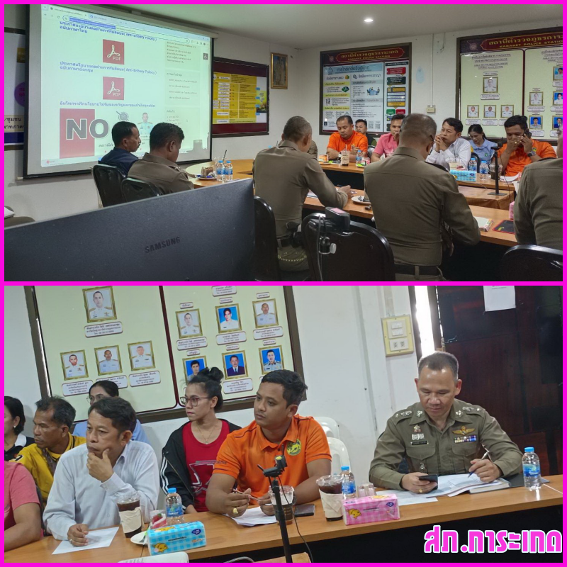 ในวันที่ 7 ก.พ. 2567 เวลา 10.00 น. นายศุภชัย กาจนาประดิษฐ์ ประธาน กต.ตร.สภ.การะเกด พ.ต.ท.วรรณชัย คงศาลา สวญ.สภ.การะเกด  พร้อมด้วยคณะกรรมการ กต.ตร.สภ.การะเกด เข้าร่วมประชุม เพื่อติดตามผลการปฎิบัติงาน และพิจารณาการแก้ปัญหาตามความต้องการ/การร้องเรียนของประชาชน และชี้แจงกิจกรรมการประเมินผู้มีส่วนได้เสียภายนอก EIT(2) โดยประธาน กต.ตร.สภ.การะเกดเป็นรายชื่อในการตอบแบบสอบถาม ของ ปปช.